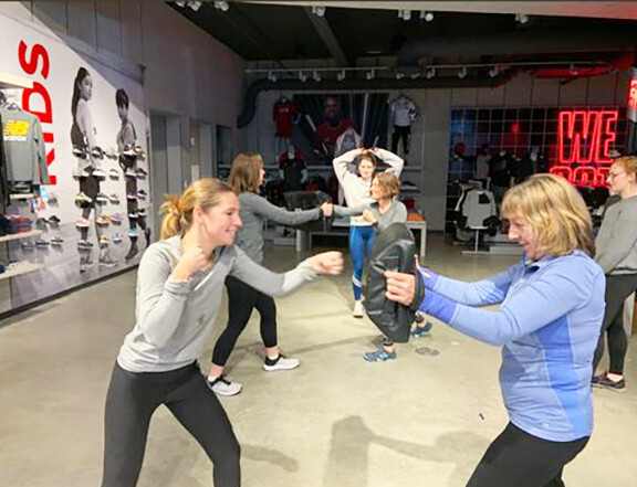 The Train Your Roar sessions teach skills along with mindset, including reminding people to trust their gut and to be aware, Tolkoff says. “I think, in the age of cell phones and distraction and all these noise-cancelling headphones, we have lost that.”
