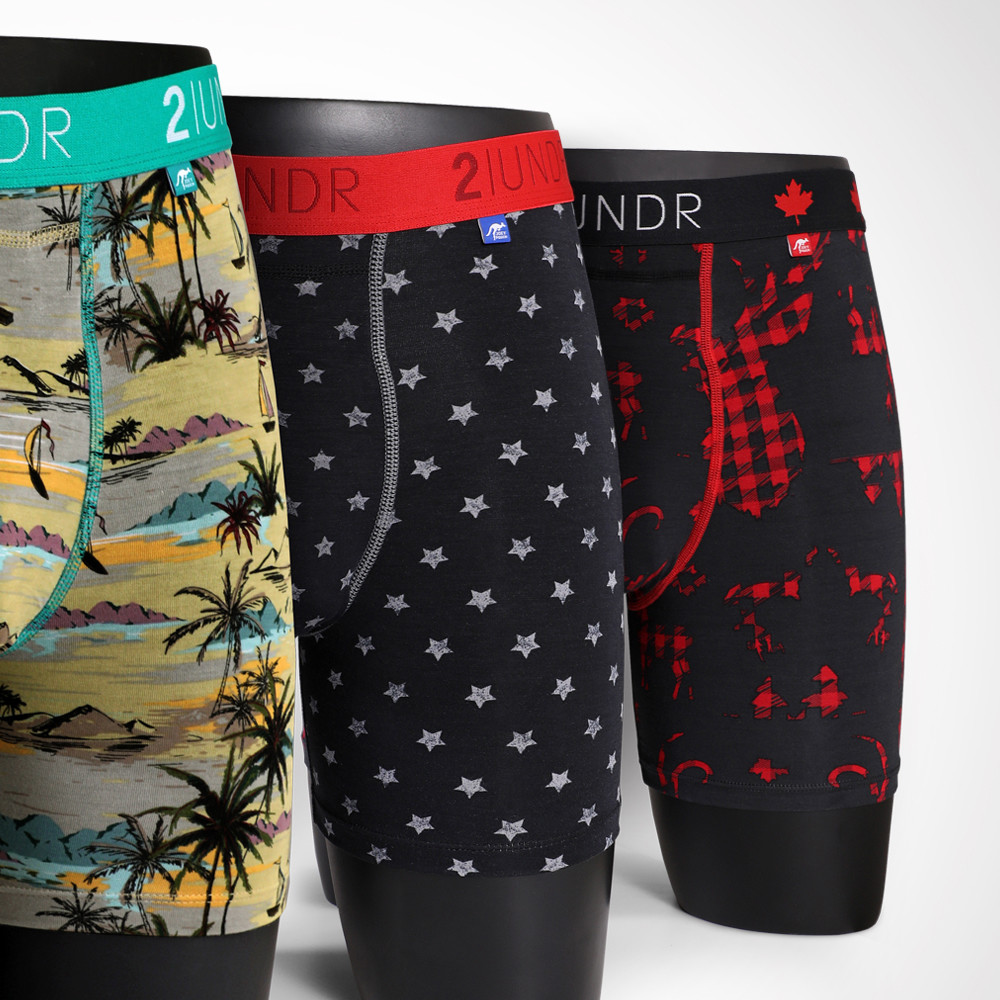 Introducing the new Swing Shift 2020 Summer Collection. Featuring our most popular style in four new prints including the island getaway inspired Cast Away, the bold geometric Ore Geode, a simple star covered patriotic salute with Free4All, and a twist on classic plaid plus a maple leaf band with True Doe.The 2UNDR Swing Shift features the patented Joey Pouch® to deliver the perfect fit while preventing unwanted skin contact and chafing. Run cooler and more comfortably with the ultimate performance underwear.
