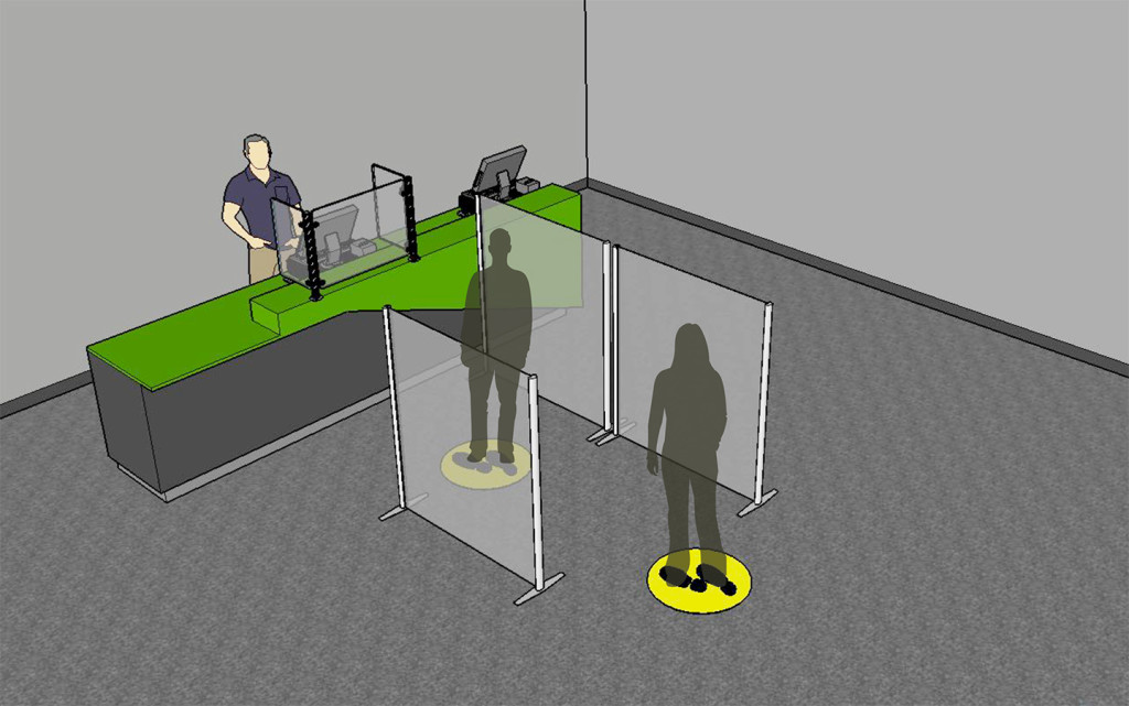 The cash wrap area is another challenging spot in a post-COVID-19 world. Stores will have to come up with a design for checking customers out — some will only have one cash wrap open, most will have designated areas where people can stand and a divider between multiple aisles and a sneeze guard at cash wrap. To cap it all off, there needs to be a clear and obvious path to leaving the store.
