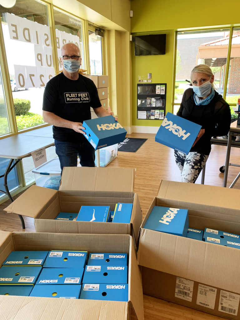 The Fleet Feet Fort Wayne effort was part of Hoka One One’s Front Line Give Back Program, launched earlier this year to benefit those fighting COVID-19 directly. As part of this initiative, Hoka is working with retail partners to donate 5000 pairs of shoes directly to healthcare workers on the front lines of national relief efforts across the country.
