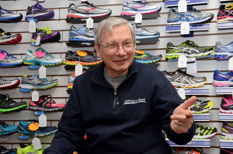 Baum opened the original Flying Feet in a 435-square-foot storefront alongside three other little shops. “And we thought that would be plenty of room.” It wasn’t, of course, even in the fledgling days of run specialty. Over the years, Baum expanded, relocated and continued gobbling up additional space. At the time of Baum’s retirement, Flying Feet’s retail operation covered 3500-square feet.