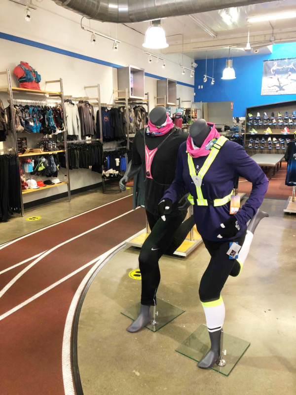 To facilitate social distancing, many run shops removed apparel racks from the floor, slimming down apparel presentations and removing duplicates to create a more streamlined look. Some even eliminated fitting rooms to gain floor space or, like Jus’ Running did for about two months at the onset of the pandemic, closed fitting rooms.