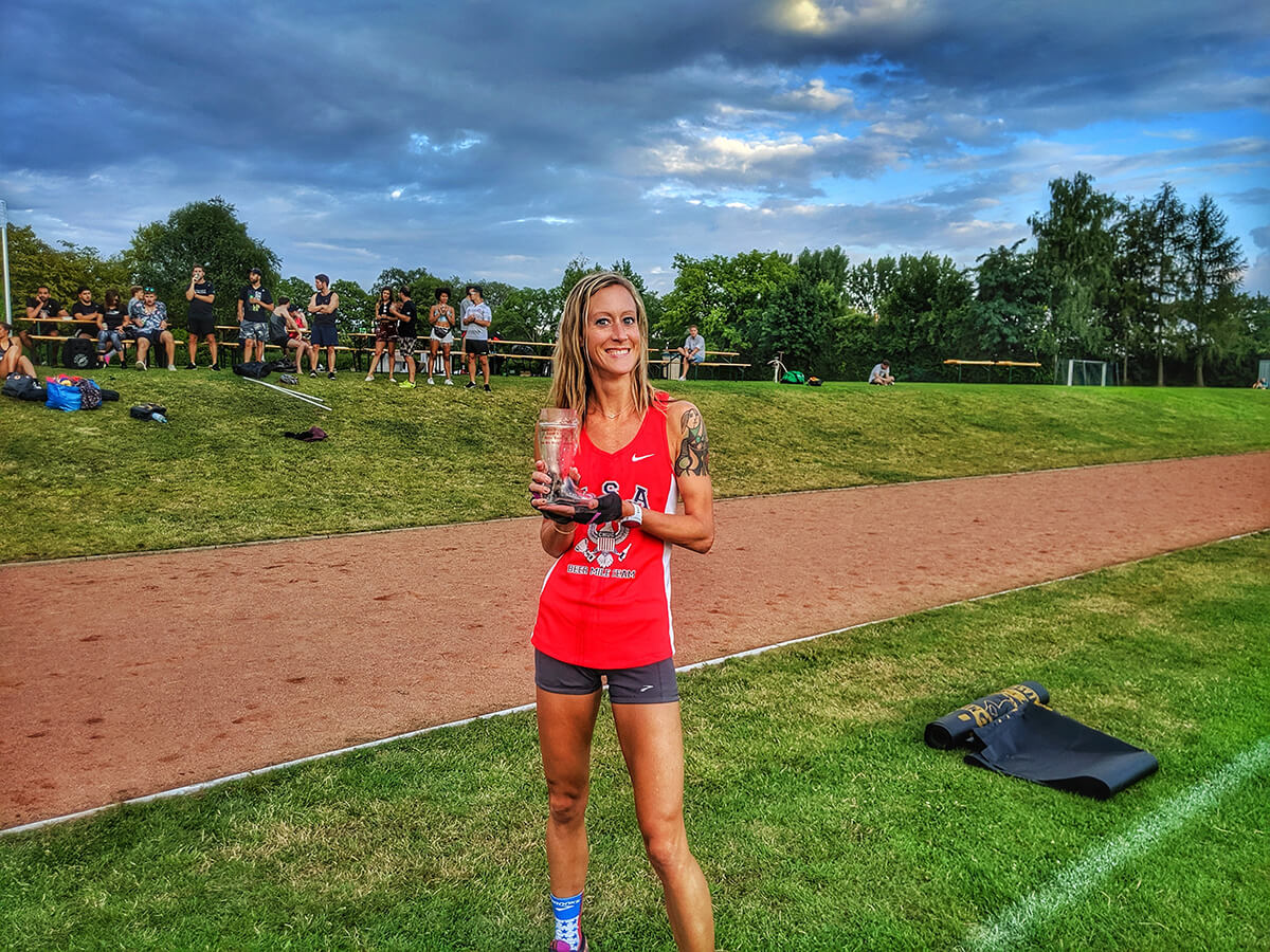 While Canada’s Corey Bellemore continued to exert his supremacy in beer mile racing, American Allison Grace Morgan (in photo) became one of the all-time best on Aug. 4 at the 2019 Beer Mile World Classic in Berlin. Bellemore, the world’s most dominant beer miler and world record-holder (4:33), avenged his disqualification in last year’s championship with an impressive 4:36 effort on a dirt track in Berlin to win his second title in four years. (American Chris Robertson was a distant second in 4:47, but his time was just one second off his American record.) Meanwhile, Morgan, a strong runner on the track and roads with a 4:40 mile PR to her credit, might have found a new niche as a beer miler. The 37-year-old Bend, OR, resident, dominated the women’s elite race wire-to-wire in Berlin to win in 6:24, the fourth-fastest women’s time ever.
