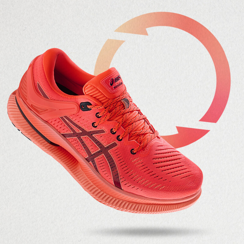 ¥ The Sunrise Reborn Pack is comprised of two models Ð the Metaride and the GEL-Quantum 360 TYO Ð both of which utilize recycled polyester fabric made from collected clothes in the shoes’ uppers. “We utilize clothing that would be discarded and reduce the usage of virgin polyester raw materials,” says Fay. “We have achieved reducing CO2 emissions by approximately 25 percent in this recycling process, compared to the general manufacturing process of polyester pellets. We are taking up the challenge of circular manufacturing and responding to climate change.”