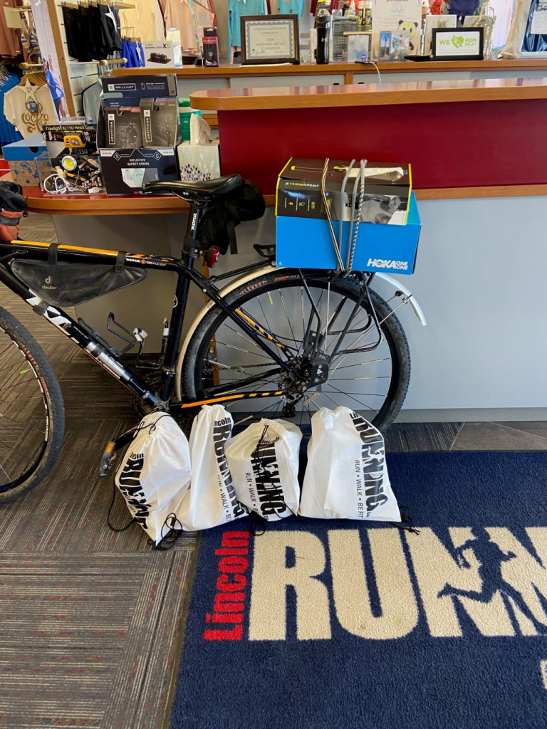 At Nebraska’s Lincoln Running Company, longtime manager Ann Ringlein has made a daily habit of hopping on her bike and delivering product to customers upwards of 40 miles away. It’s a move that saves the store on shipping costs, keeps the ever-energized Ringlein moving and demonstrates the store’s can-do spirit. She’s also added a partner – a local UPS driver who’s volunteered to make deliveries on weekends for the shop – and tossed in a special treat on Monday deliveries: tubs of cookie dough from the Cookie Co., a fellow small business in downtown Lincoln. Customers have left Ringlein and her fellow cycling partner handwritten thank you notes and even homemade cookies. “This has just blown up and Ann could really use a pull-behind trailer,” jokes Chris Rogers, the third-generation owner of Lincoln Running Company.