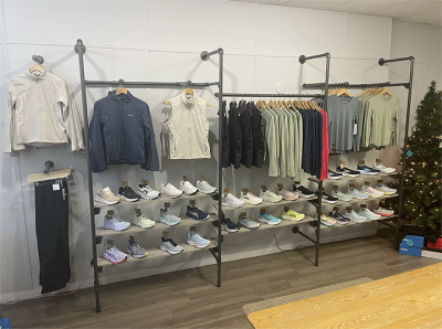 We used to struggle with apparel space in the fall as we added winter apparel like base layers, jackets, vests and pants while still needing to display the shorts, shirts and singlets we sell all year long. It just wasn't an issue this year as we were able to move things around and create apparel collections on the walls without packing the floor with racks.